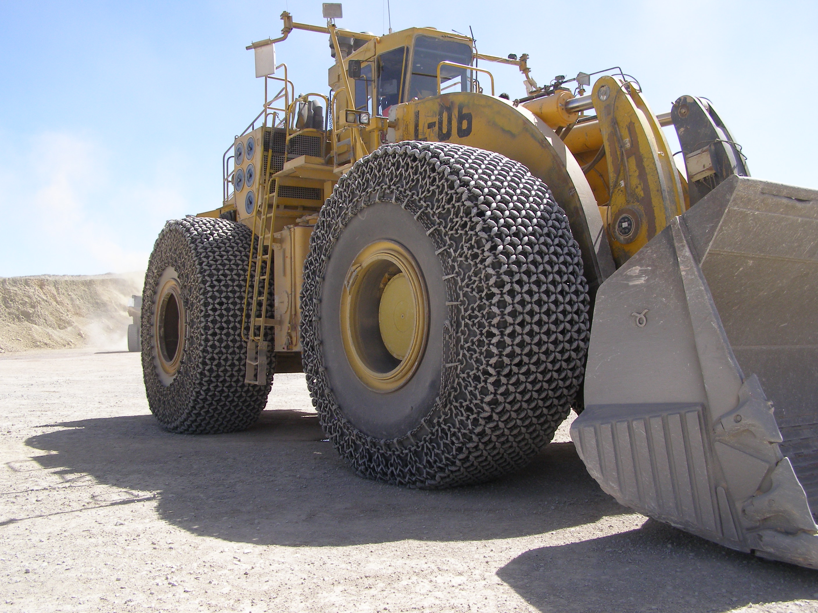 Korkealaatuiset suojaketjut kaivoksilla ja kivilouhimoissa käytettäviin pyöräkoneisiin.